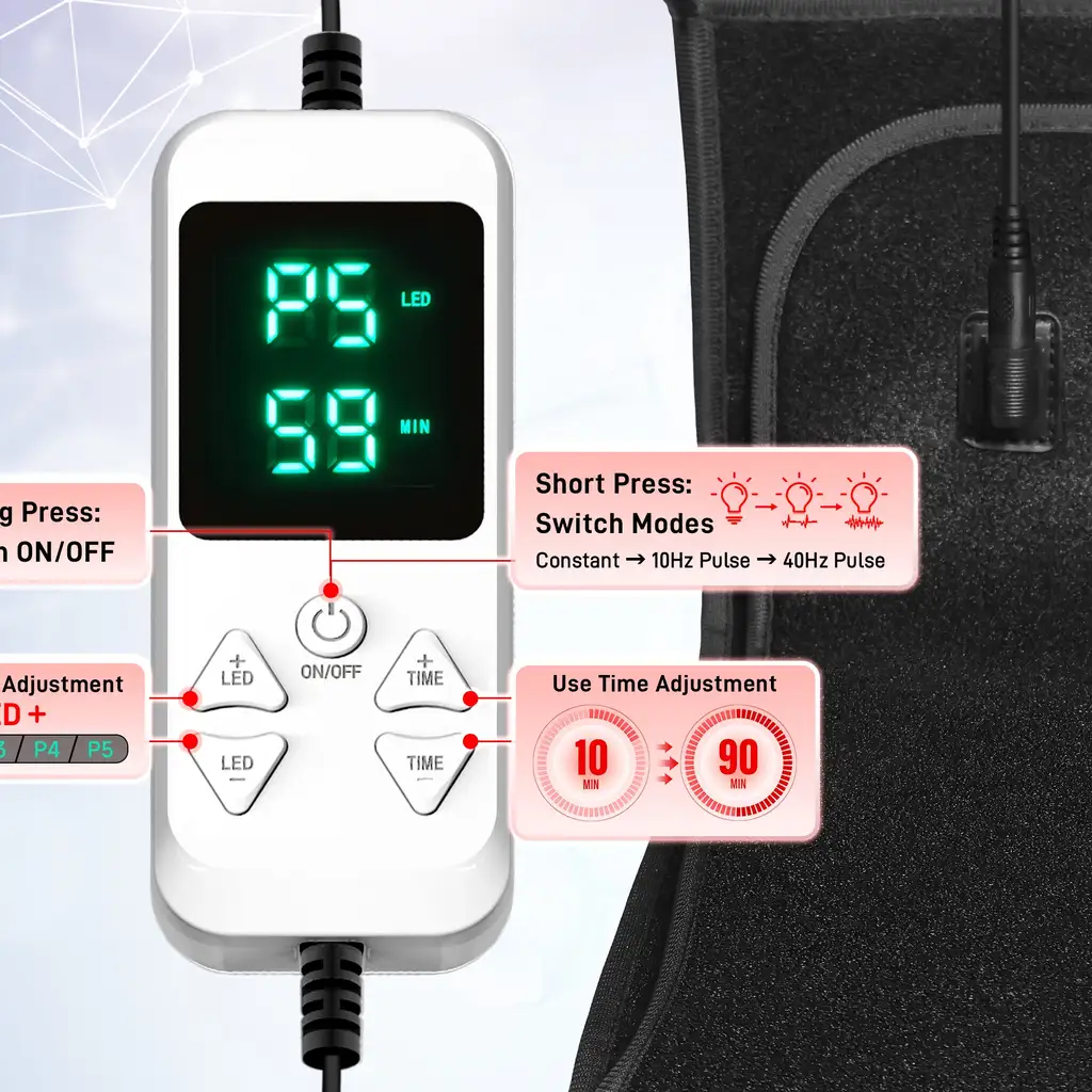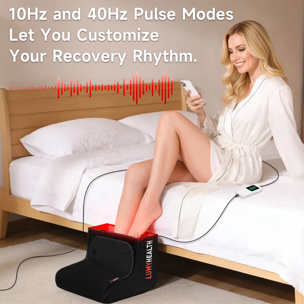 5 powerful wavelengths work together to target both surface and deep tissues: 660 nm for skin and tissue repair, 810–850 nm for muscles and joints, and 1060 nm for deep connective tissue support. Reduce inflammation, relieve foot fatigue, and boost circulation in every session.