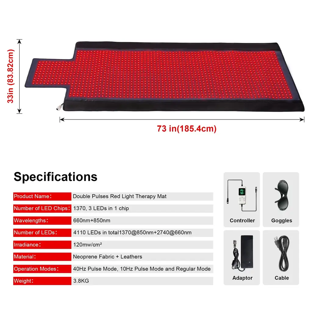Cutting-Edge Technology: Equipped with 1,436 advanced LED beads, each containing two 660nm red light chips and one 850nm infrared chip, this mat delivers a powerful multi-wavelength combination. These lights penetrate deep into subcutaneous tissue, effectively easing pain, reducing fatigue, and improving sleep quality for a holistic wellness experience.