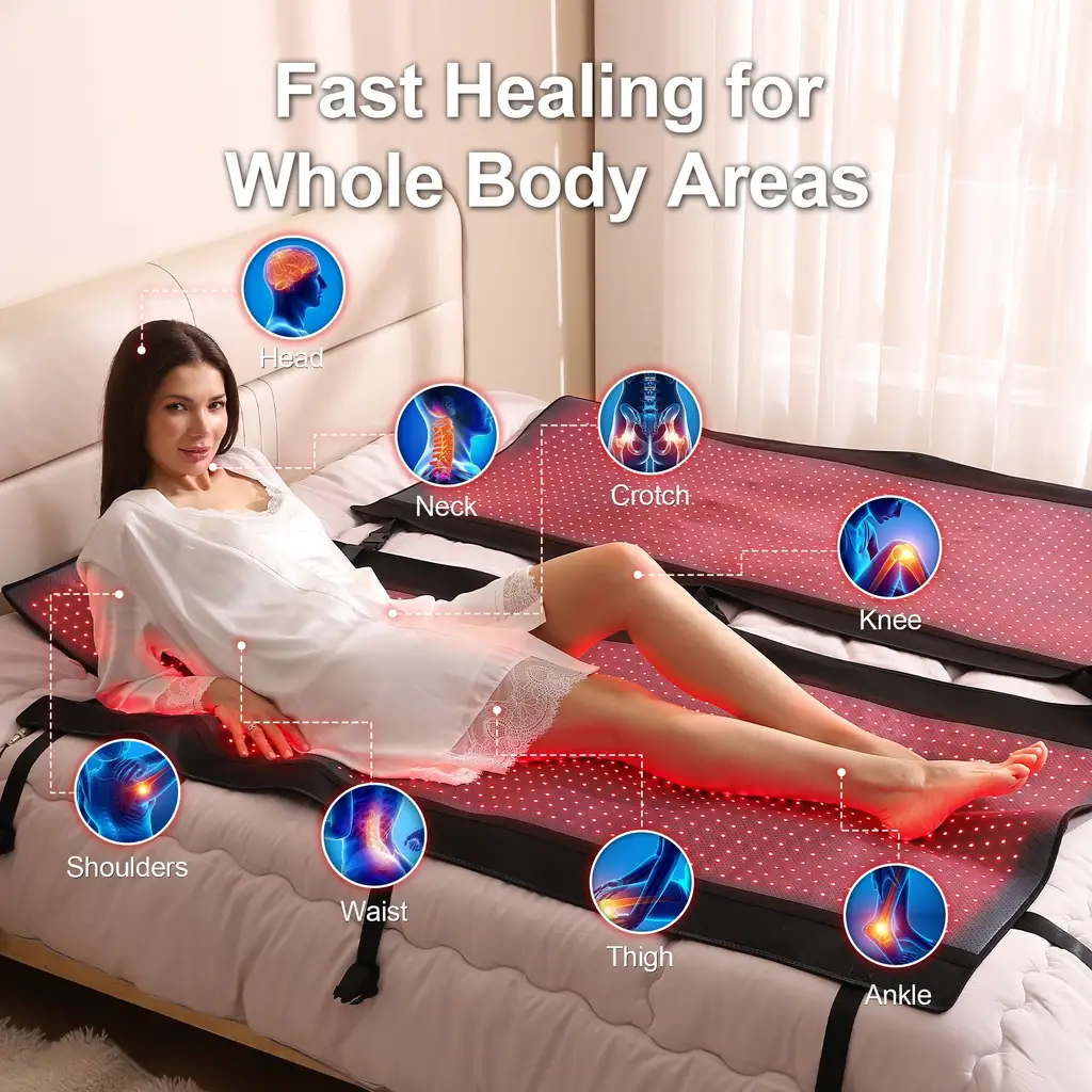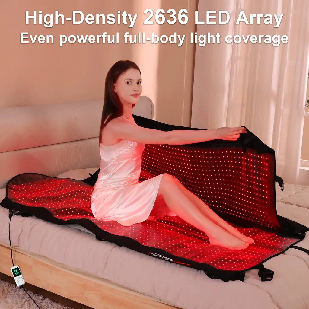 Whole-Body Red Light Therapy for Home Use: Experience the benefits of the Whole-Body Red Light Therapy Mat, featuring 2,636 light beads emitting dual wavelengths (660nm and 850nm). This innovative spectrum delivers comprehensive therapy, effectively addressing a wide range of health concerns with precision.