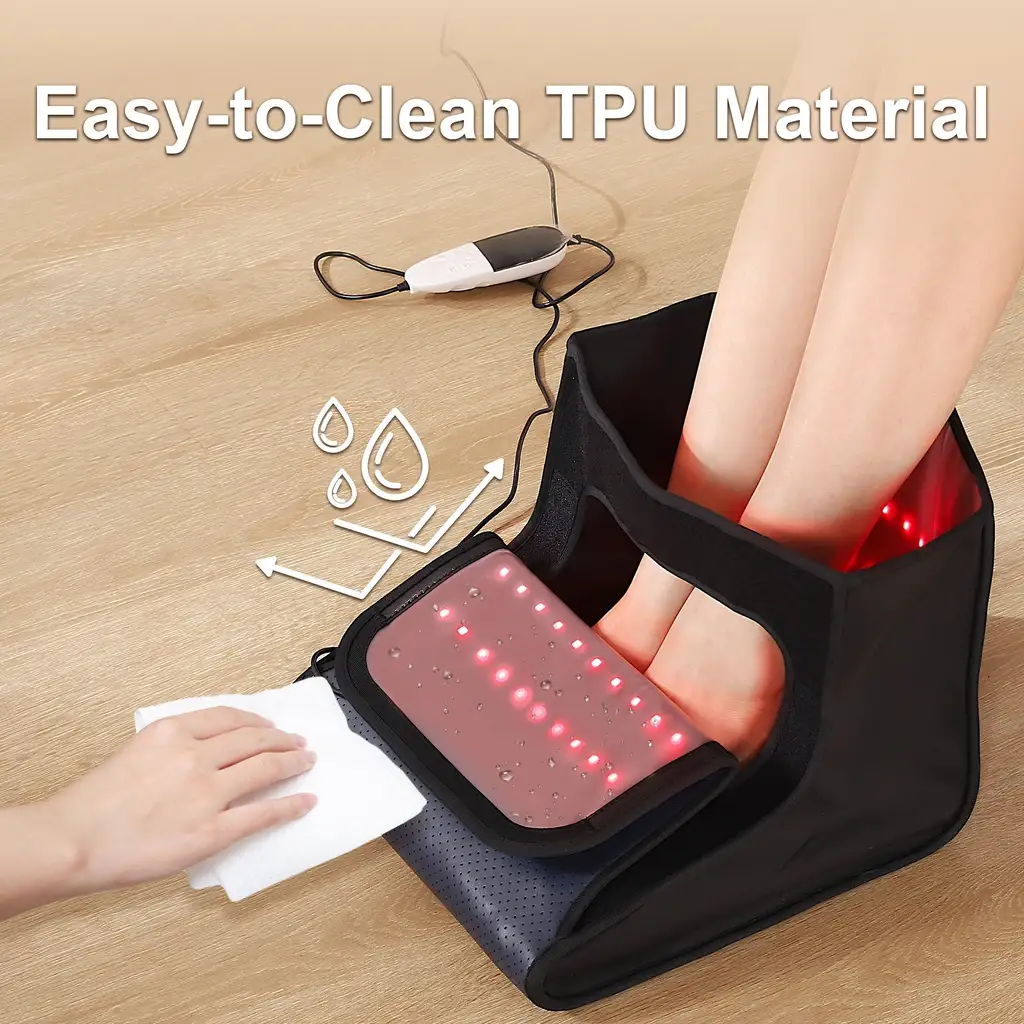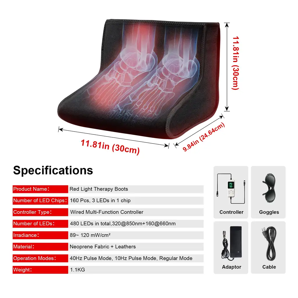 Targeted Red Light Therapy for Feet: Specially designed to alleviate foot discomfort, this device features an ergonomic, foot-shaped design that ensures complete and comfortable coverage. It’s perfect for soothing pain from jogging, hiking, standing for extended periods, or other activities.