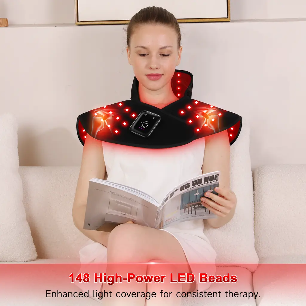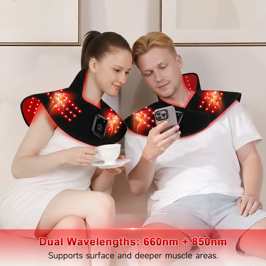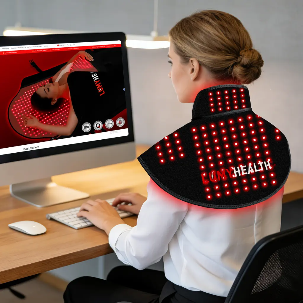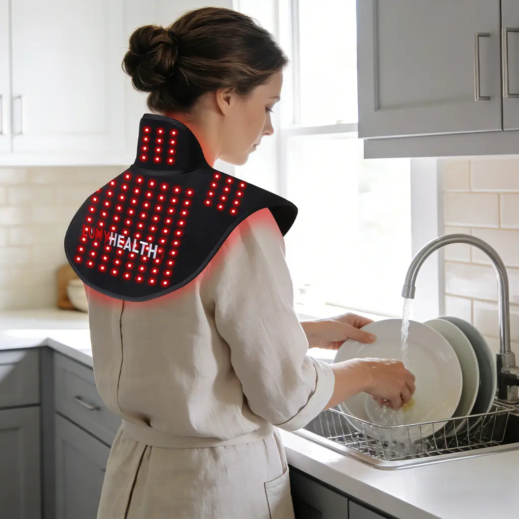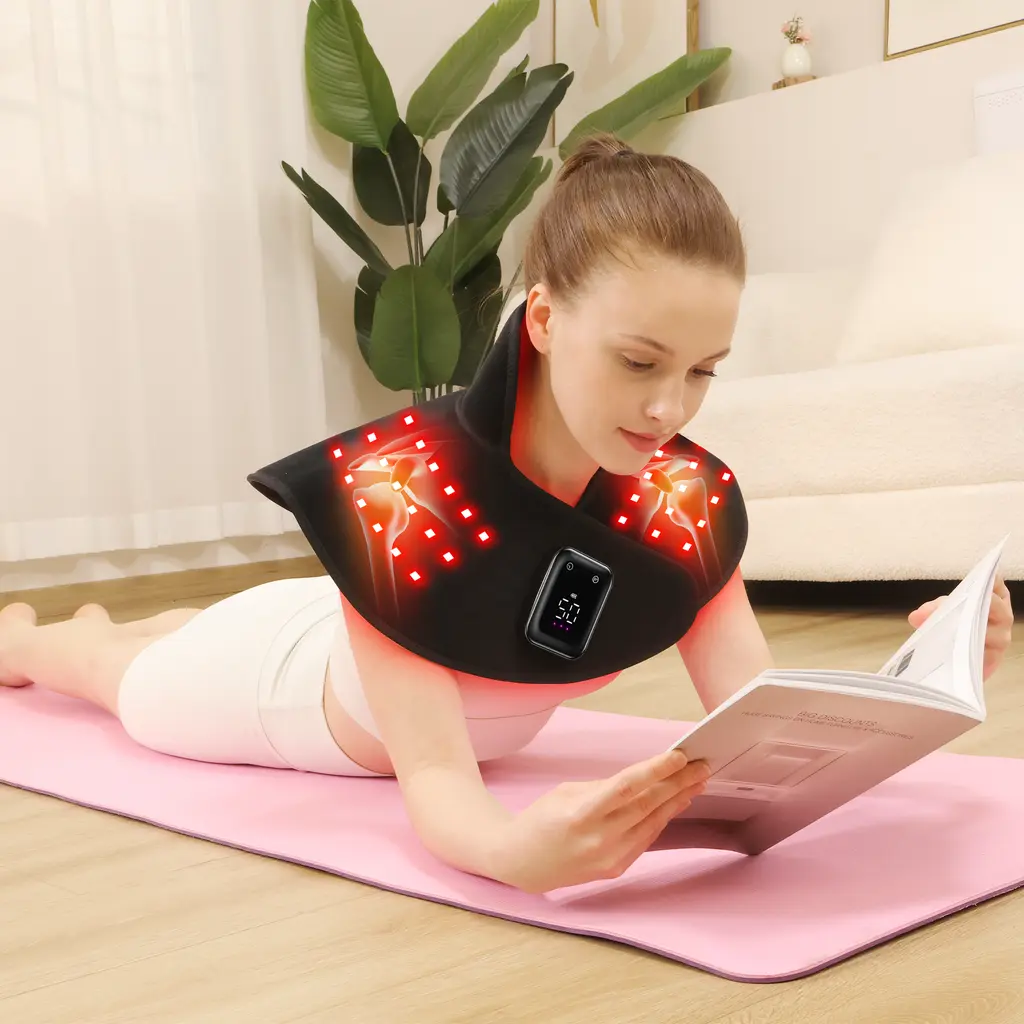 The 660nm wavelength helps stimulate cellular energy (ATP) production and supports surface tissue repair, while 850nm penetrates deeper muscle layers to relax tight areas and ease inflammation. Together, they provide comprehensive support for chronic neck tension, shoulder fatigue, and post-work strain.